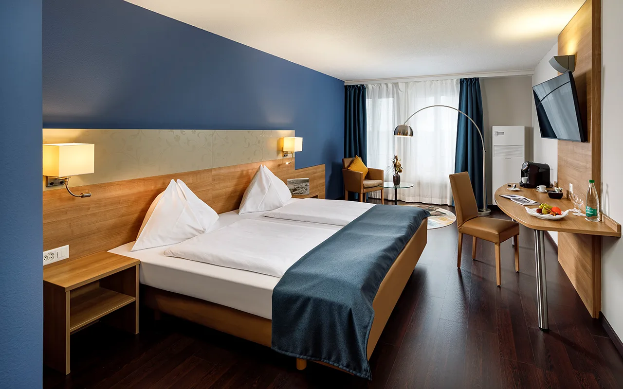 Ob Geschäftsreise oder Urlaub: Die klimatisierten Zimmer und grosszügigen Apartments bieten idealen Komfort für kurze und längere Aufenthalte – allein, zu zweit oder mit der Familie.
