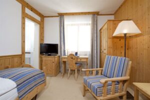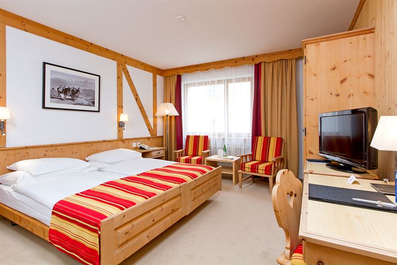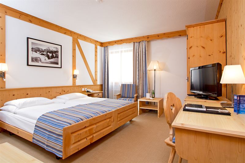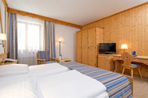 Die freundlichen Arvenzimmer, stilvollen Deluxe Zimmer sowie Junior Suiten bieten komfortable Rückzugsorte mit alpinem Flair. Direkt vor der Haustür starten zahlreiche Wanderwege und Langlaufloipen, während die Bergbahnen sich ebenfalls in der Nähe befinden. St. Moritz und mehrere traumhafte Golfplätze sind nur einen Katzensprung entfernt.