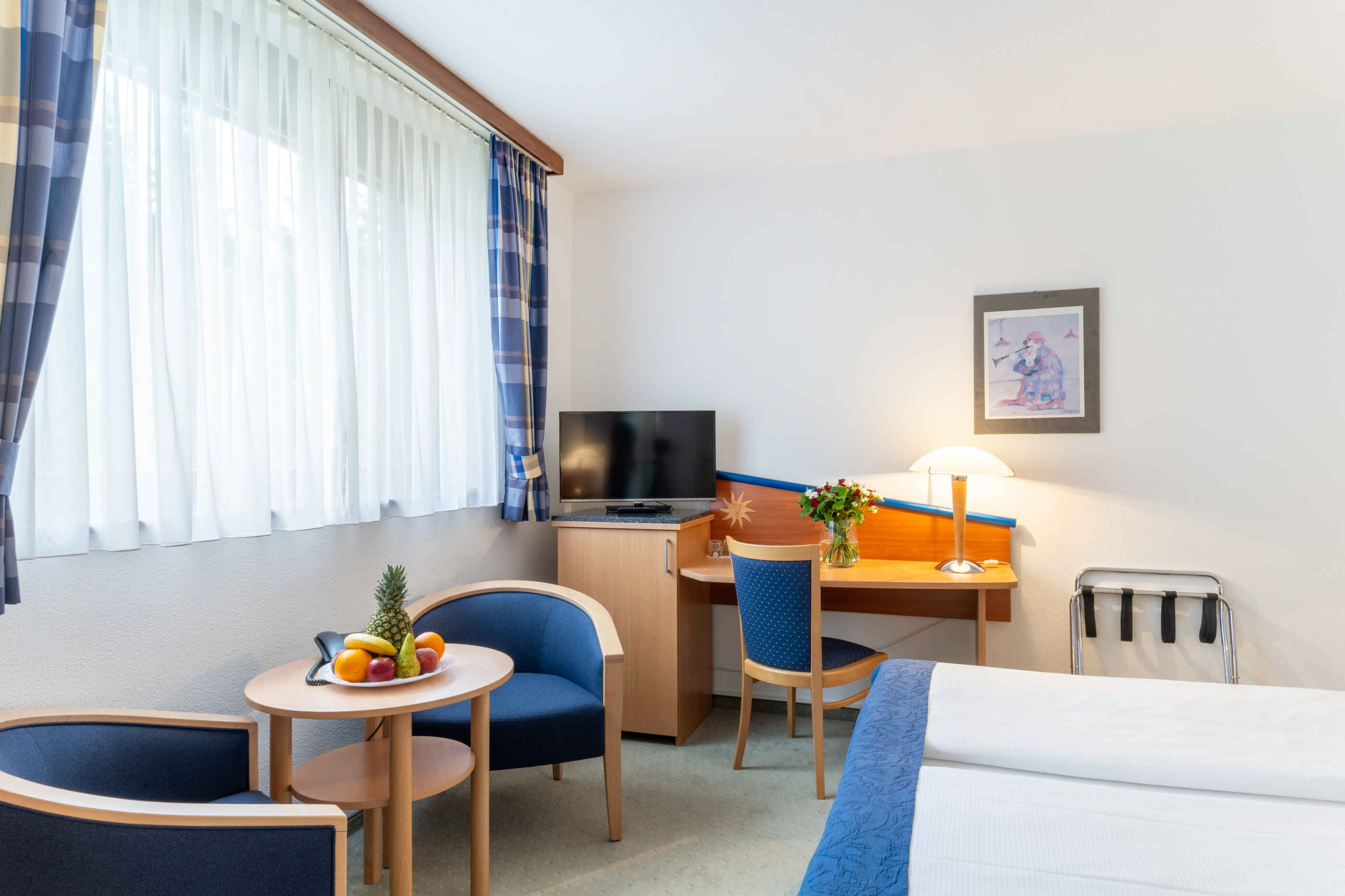 Ein kleiner Fitnessbereich ermöglicht sportliche Betätigung auch während des Aufenthalts. Ergänzt wird das Angebot durch verschiedene Massageanwendungen, die direkt im Hotel buchbar sind.